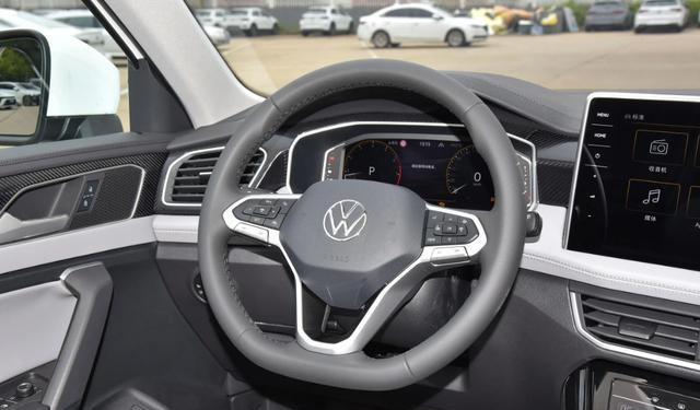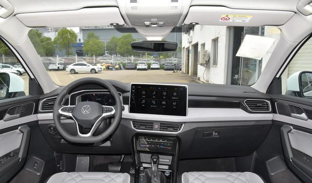 探岳内饰简约大方,操控台设功能键,配12英寸悬浮中控屏和10.25英寸仪表盘,球杆状换挡,方向盘多向调及加热。车机系统支持语音控制、导航、4G网络,可语音调空调、灯光。